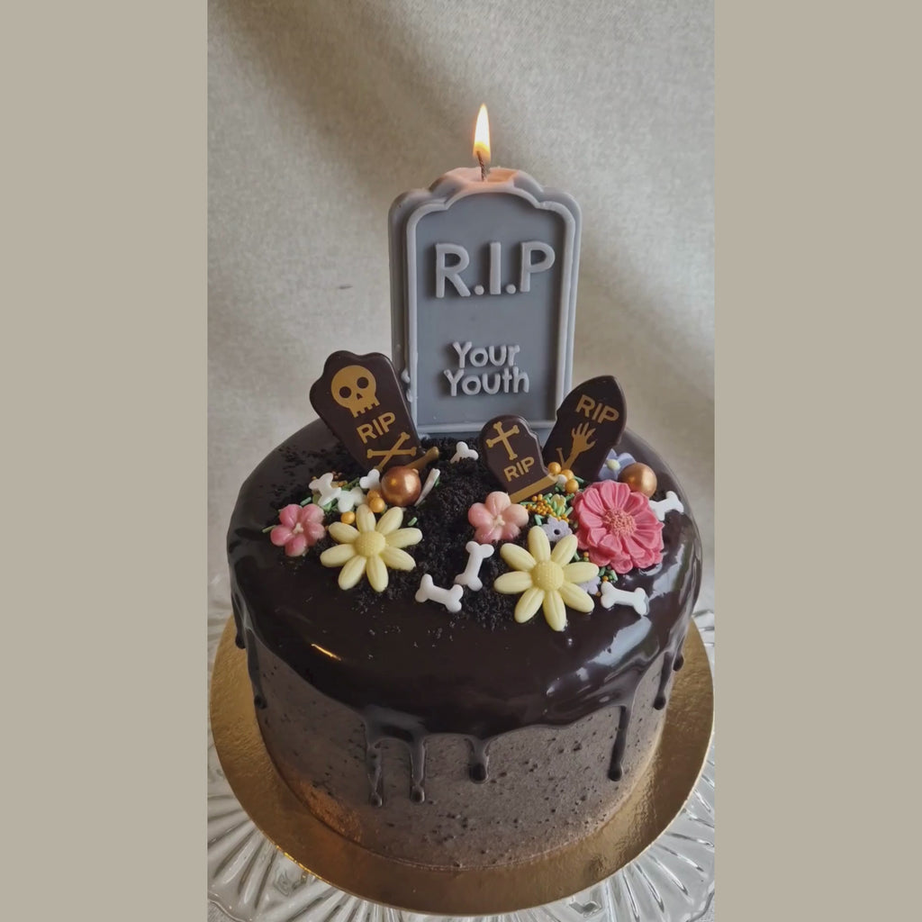 Saying goodbye to your 20's, 30's or 40`s? Deze R.I.P. Youth cake is ideaal om het met een knipoog te vieren.